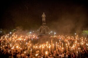 The so-called “very fine people” who attended Unite the Right were attracted the event because of the overtly racist, fascist, and neo-Nazi marketing. One featured speaker was Dr. Micheal Hill, the leader of “League of the South”. Although the name of the organization is relatively innocuous sounding, Hill’s invitation was “to defend the South and Western civilization from the Jew and his dark-skinned allies.”